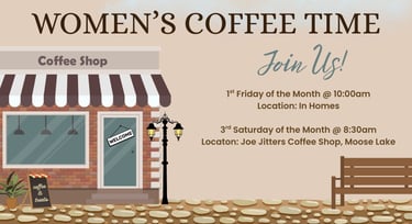 Join us the first Friday and third Saturday of the month for a coffee time...a chance to fellowship together, share prayer requests, and encourage one another!
